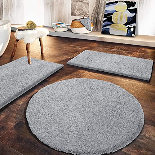 Floordirekt Tappetino da bagno Sky Soft, rettangolare e rotondo, extra soffice, antiscivolo e ad asciugatura rapida, disponibile in diversi colori e dimensioni (70 x 120 cm, grigio argento)