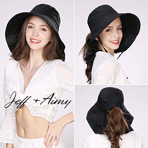 Jeff & Aimy UV Floppy Beach Straw Sun Hat per le donne Cappello estivo a tesa larga Moda Fedora Hat Accessori per le vacanze all'aperto Packable Nero, nero, M