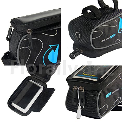 Florally Bicicletta Sacchetto Supporto smartphone bici della bicicletta del borsa del tubo Telaio frontale in PVC trasparente con linea di estensione audio