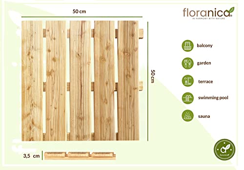 Floranica Piastrelle per terrazza in legno 2,5m2 10 pezzi 50x50 cm Legno di larice impregnato Naturale Pavimento per sauna terrazza o balcone Piastrelle di legno in giardino Superficie fresata