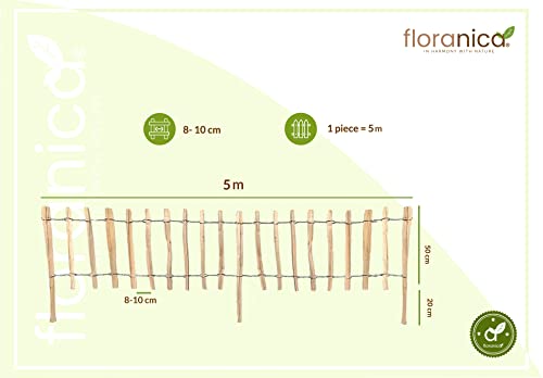 Floranica Recinzione da giardino hazel recinzione di Legno rete per recinzioni bordura per aiuola Distanza tra 4-6 cm 8-10 cm staccionata in legno Lunghezza: 500cm Altezza: 50cm Distanza: 8-10cm