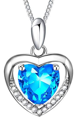 FLORAY Donna Cuore di Blu Cristallo Collana Argento Cuore Ciondolo, Sterling Silver Catena. Lunghezza Catena: 45cm