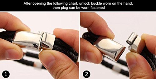 FLORAY uomini gioielli braccialetto di cuoio, intrecciato Wrap Bangle, Acciaio inossidabile Chiusura, nero elegante. (Style 6)
