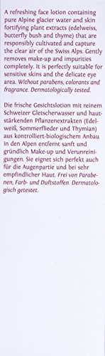 Lozione per il viso fresca con pura acqua di glacier svizzera.