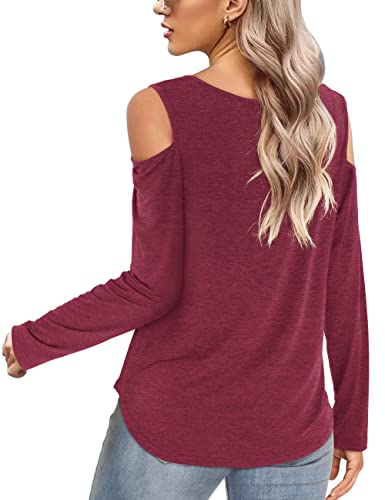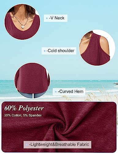 Florboom - Top da donna a maniche corte, stile tunica, con scollo a V e spalle scoperte Borgogna. 14-16