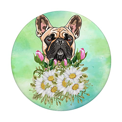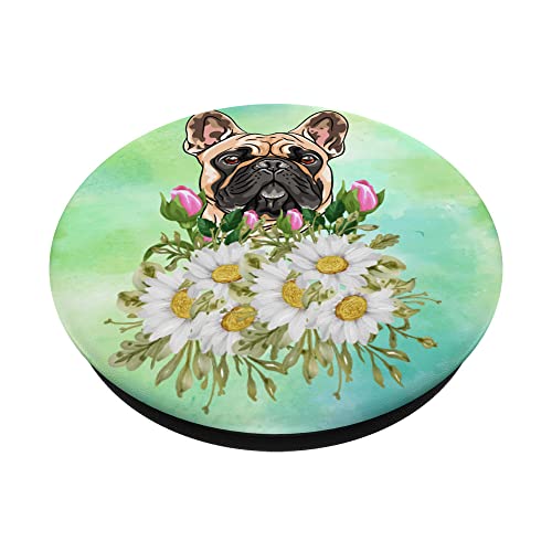 Floreale Bulldog Francese Margherita Tulipano Fiori Frenchie Cane PopSockets PopGrip Intercambiabile