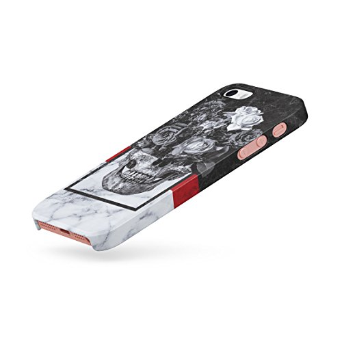 Floreale Roses Human Skull Black & White Marmo Stone Custodia Posteriore Sottile in Plastica Rigida Cover per iPhone 5 & iPhone 5s & iPhone SE Slim Fit Hard Case Cover