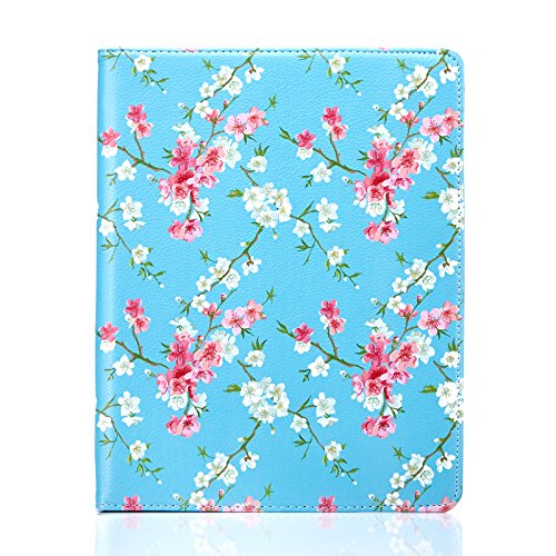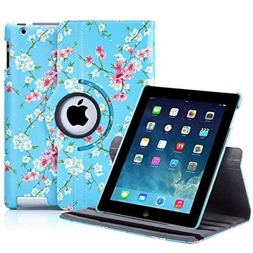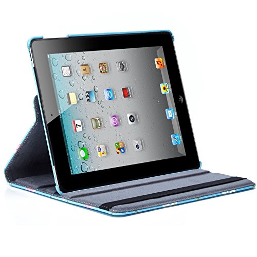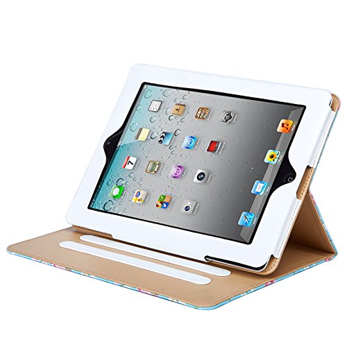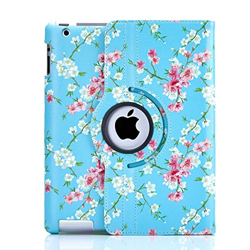 32nd Floreale Series - Custodia Folio in Pelle PU per Apple iPad 2, 3 & 4, Case Realizzato in Pelle Sintetica con Supporto integrato - Primavera Blu