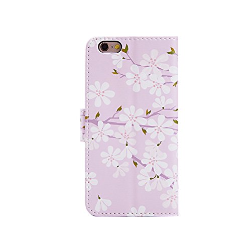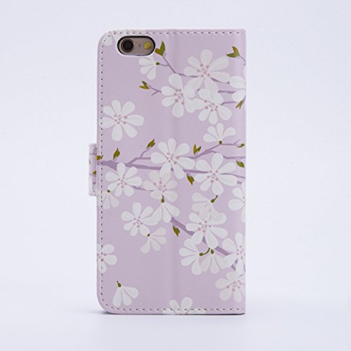 32nd Floreale Series - Custodia a Portafoglio in Pelle PU per Apple iPhone 6 & 6S, Case Realizzato in Pelle Sintetica con Diversi Comparti e Chiusura Magnetica - Fiore di Ciliegio