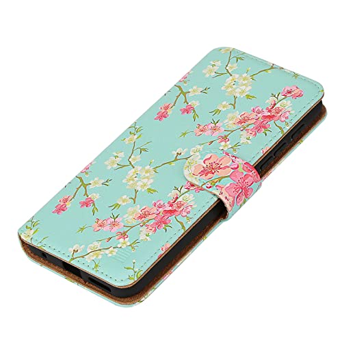 32nd Floreale Series 2.0 - Custodia a Portafoglio in Pelle PU per Motorola Moto E7 Plus, Case Realizzato in Pelle Sintetica con Diversi Comparti e Chiusura Magnetica - Primavera Blu
