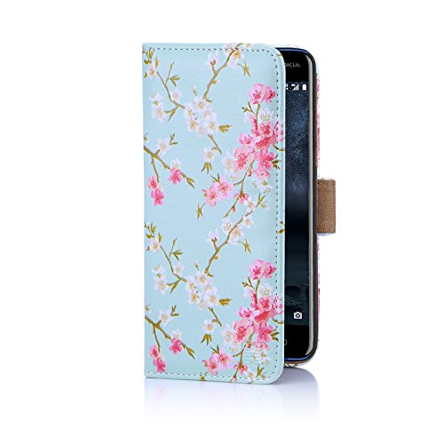 32nd Floreale Series - Custodia a Portafoglio in Pelle PU per Nokia 5 (2017), Case Realizzato in Pelle Sintetica con Diversi Comparti e Chiusura Magnetica - Primavera Blu