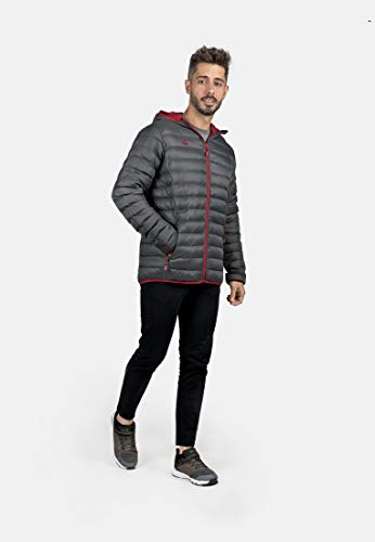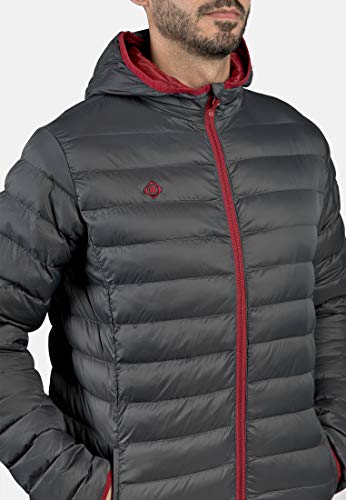 IZAS Florenz Piumino con Capuccio, Uomo, Grigio Scuro/Rosso Minerale, XS
