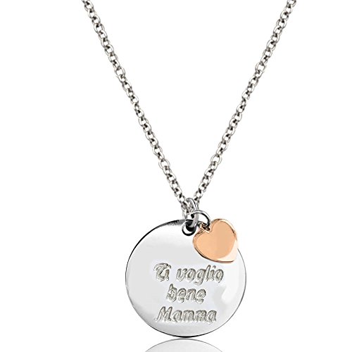 Flores Collana con Incisione Ti Voglio Bene Mamma con Cuore Dorato Rosa Argento 952/1000 Speciale Festa della Mamma. Collana con Incisione Personalizzata
