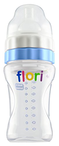 Flori 20001 Biberon da viaggio, Mix e Go Ideale per la notte con tettarella, senza BPA, 100% Made in Germany, 300 ml, blu