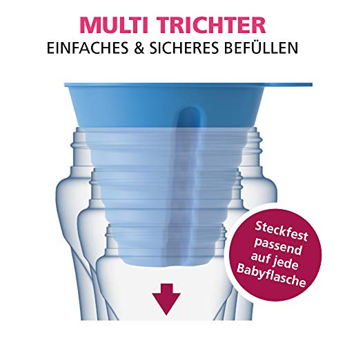 Flori Baby Multi imbuto per un riempimento preciso di tutti i biberon senza tenerli fermi, a incastro per 7 diversi diametri 100% Made in Germany, senza BPA, set da 2 pezzi, viola