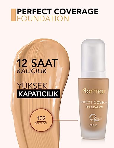 Flormar, Fondotinta Perfect Coverage, SPF 8, 102, 30 ml
