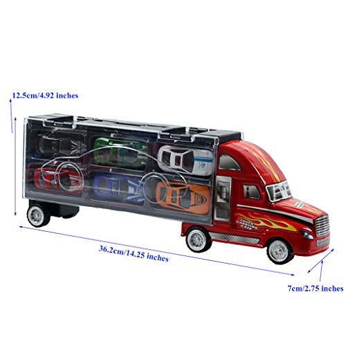 Veicoli giocattolo in lega di alta qualità - Camion da trasporto auto Include 6 fantastiche auto da corsa pressofuse, la custodia del camion ha 12 slot per auto su entrambi i lati