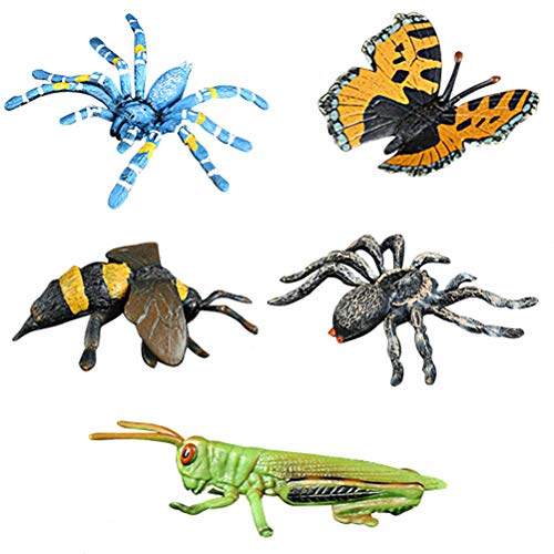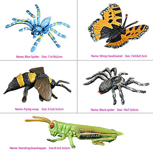 FLORMOON Figure Animali realistiche 5pcs Insect Action Model Include Cavalletta Swallowtail Vespa Ragno Giocattoli educativi per l'apprendimento Set Regalo di Compleanno per Bambini