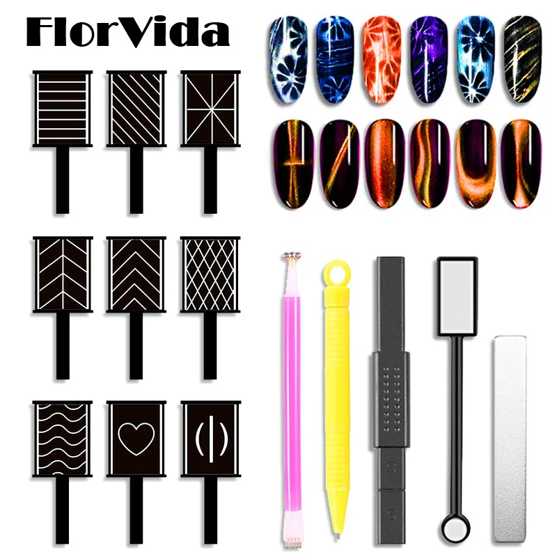 FlorVida 1pcs Strong Magnet Stick Pen For Nails Art Cat's Eye UV Gel Polish Tools Accessories Set Manicure Design Heart
