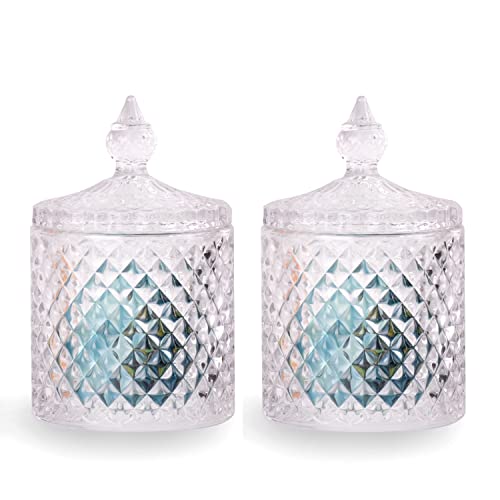 R FLORY Set di 2 barattoli di vetro da bagno, organizer per bagno, grazioso dispenser Qtip con coperchio, contenitore per tamponi di cotone (trasparente-piccolo)