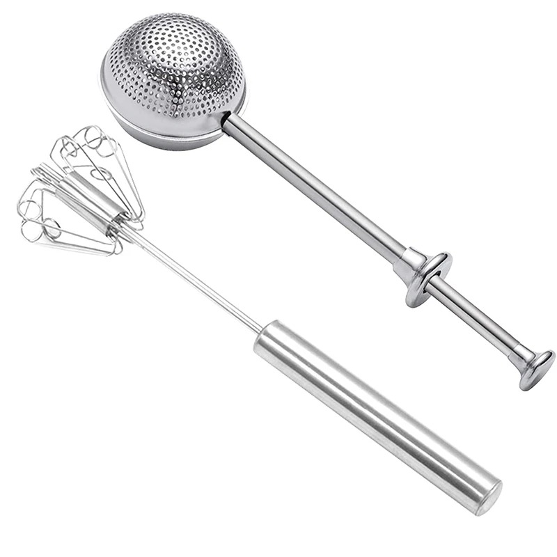 Flour or Powdered Sugar Shaker Duster, Stainless Steel Sifter Dusting Wands with Mini Whisk, Flour Sifter Duster Sifter