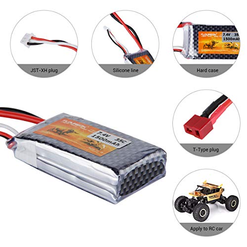 FLOUREON 2S 7.4 V 1500 mAh 35C LiPo RC Batteria T Plug per RC Auto Barca Camion RC Evader BX RC Truggy UAV FPV Drone Heli Aieplane Quadcopter DIY Hobby (1pack)