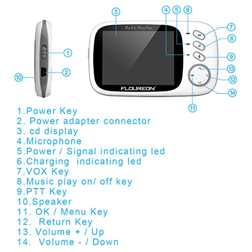 FLOUREON Baby Monitor Wireless Videocamera Bambini 3.2” LCD, Interfono, Visione Notturna, Monitoraggio Temperatura, 8 Ninna Nanna