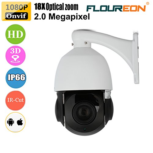 FLOUREON, telecamera IP PTZ, 1080P, ONVIF P2P, telecamera di sorveglianza impermeabile con visione notturna, filtro IR-Cut e rilevatore di movimento