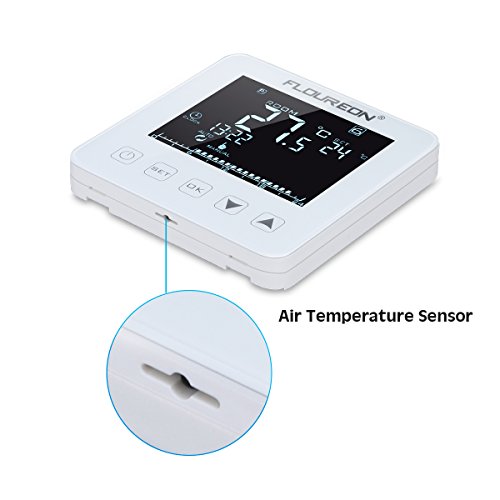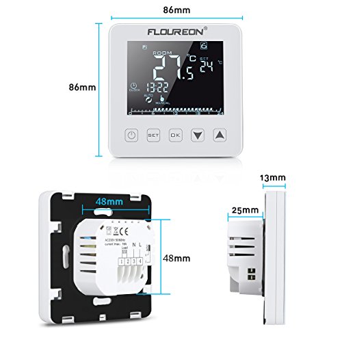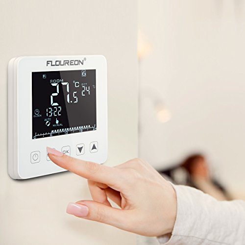 Floureon termostato per stanze, elettrico, per riscaldamento, da parete, touch screen, con display LCD grande, regolatore della temperatura Digital Smart, riscaldamento del pavimento programmabile, Bianco