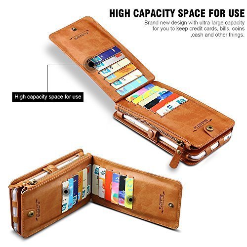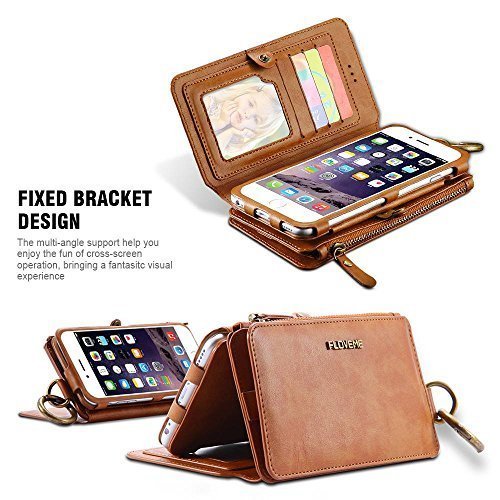 FLOVEME Custodia per iphone se/5/5s Portafoglio a Libro 2 in 1 in Pelle Multifunzionale Carta Slot Staccabile Case Cover per iphone SE/ iphone5/ iphone5s, Colore Marrone