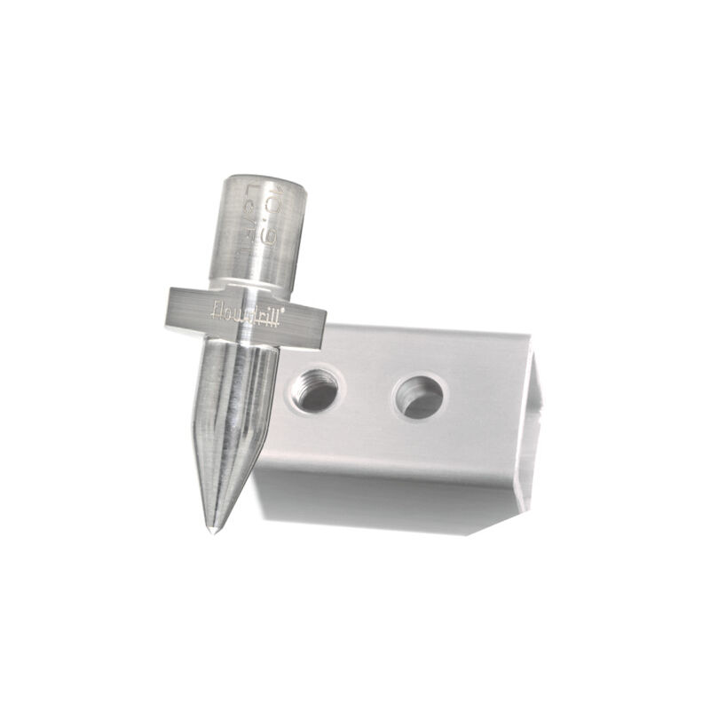 Punta in metallo duro per la realizzazione di prefori preliminari alla maschiatura a rullare.: La velocità e l'attrito generano calore a livello locale e la conseguente plastificazione di ogni tipo di materiale metallico. In questo modo è possibile realizzare in pochi secondi tagli chiusi senza trucioli su più spessori iniziali. L'utensile in HM ruota velocemente sulla lamiera e generando calore per attrito consente la realizzazione di fori rinforzati su tubo o lamiera in pochi secondi, senza asportazione di truciolo. Sotto l'effetto della temperatura il materiale diventa plastico e la punta lo attraversa collocando ai lati il materiale stesso. Vantaggi: * Notevole risparmio di tempo e denaro rispetto ai metodi convenzionali (per esempio dadi autofrenanti). * Senza trucioli né rifiuti;