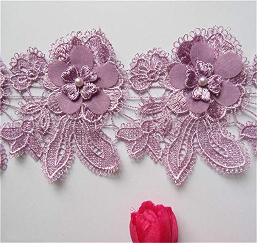 0,9 m Flower Pearl 3D Lace Edge Trim nastro 10 cm larghezza stile vintage viola bordo passamanerie tessuto ricamato applique cucito artigianale abito da sposa abbellimento fai da te Decorazione