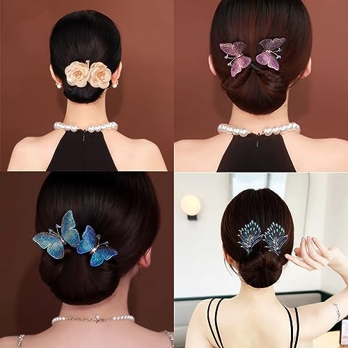 4 Pcs Flower Hair Bun Roller, Rhinestone Flower Hair Clip, Ins Style Elegant Lazy Hair Curler, French Twist Hairstyle Bun Hair Accessories, Flower Butterfly Lazy Hair Bun (A)