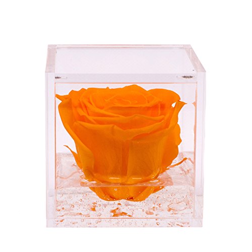 FLOWERCUBE Rosa STABILIZZATA 6X6 Colore Arancione PROFUMATA Regalo