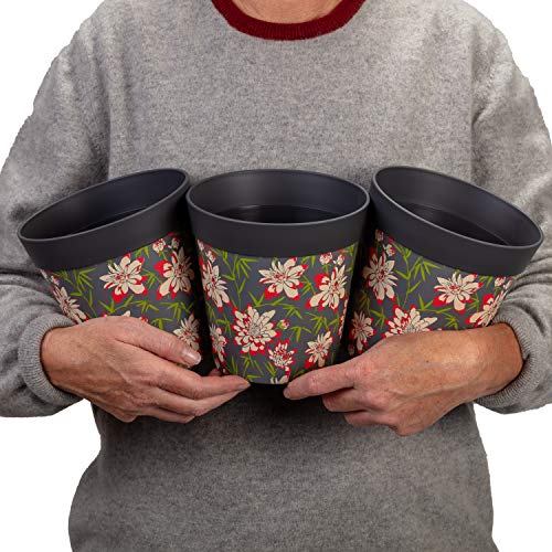 Hum Flowerpots, Set di Tre Vasi per Piante da 15cm, Vari Modelli, Colori e Dimensioni, per Interni ed Esterni, Grigio Floreale