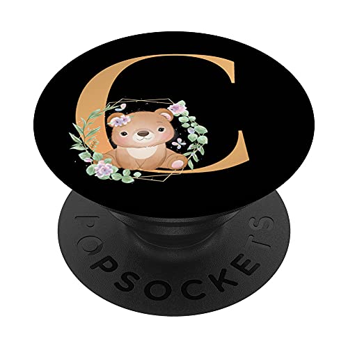Cute Bear Flowers Black Letter C PopSockets PopGrip: Impugnatura per Telefoni Cellulari e Tablet Intercambiabile