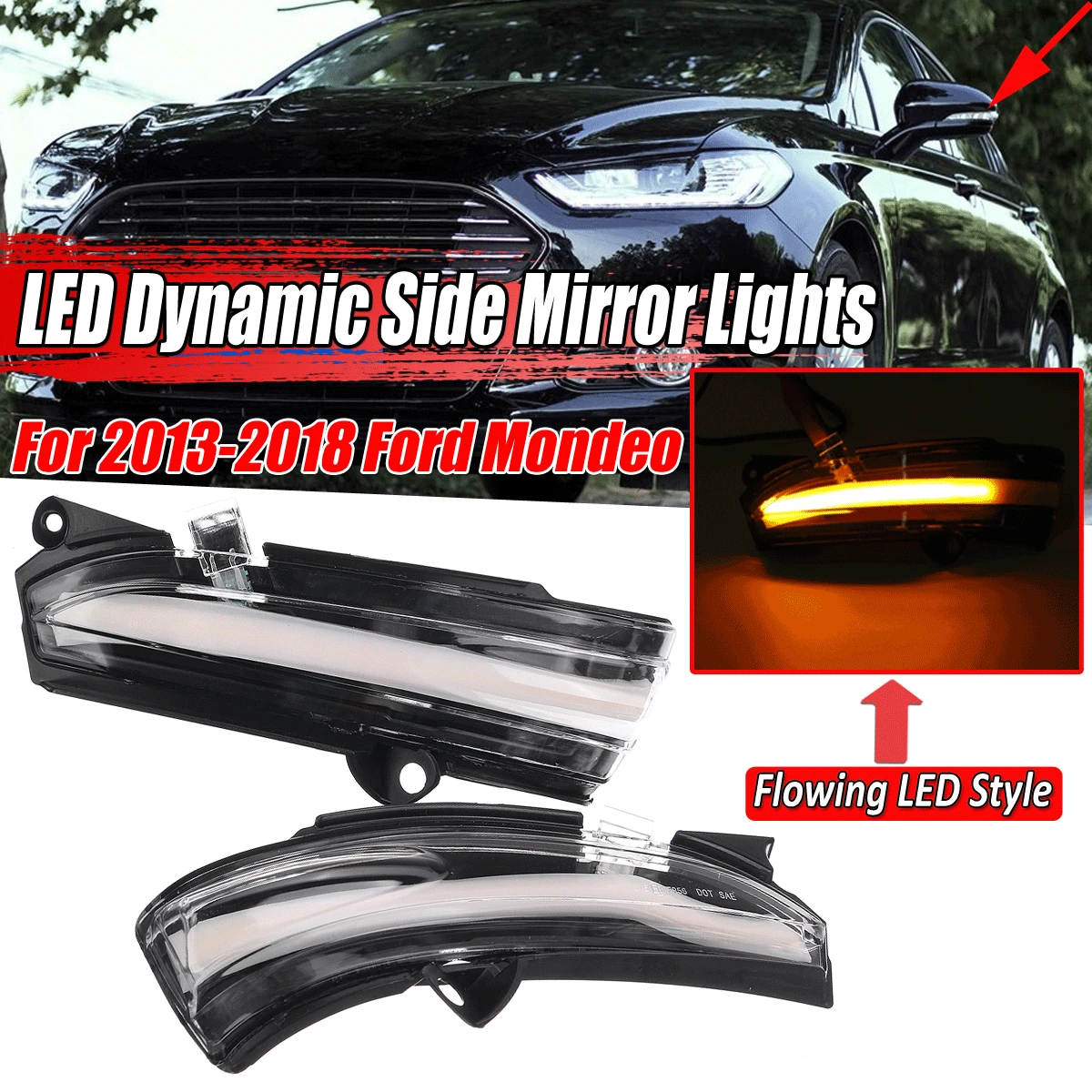 2pcs Flowing Turn Signal Light LED Side Wing Rearview Mirror Dynamic Indicator Blinker For Ford For Mondeo For Fusion 2013-2018