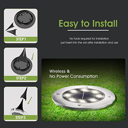 FLOWood lampade solari per esterni da giardino 8 pezzi 8 LED luci solari da pavimento luci a energia solare IP65 impermeabili per esterni vialetto patio giardino Bianco freddo