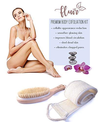 Fluir - Spazzola a secco per il corpo, con spugna esfoliante di luffa per la schiena, sacchettino di lavanda e borsa viaggio