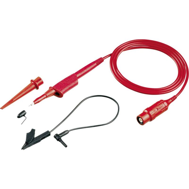 Dettagli tecnici Adatto per (dettagli) ScopeMeter serie 190 Ampiezza di banda 200 MHz Calibrato di fabbrica senza certificato Categoria di misura (LOV) CAT II 1000 V, CAT III 600 V Lunghezza cavo 1.20 m Particolarità della spina di sicurezza Resistenza d'ingresso 10 M Ω Tensione nom. 1000 V Tipo prodotto Sonda Sonda di tensione preisolata VPS210-R Sonda di tensione preisolata per gli strumenti di misura ScopeMeter della serie 190. Testo tradotto automaticamente. Punti di forza e dettagli · 10:1 Larghezza di banda 200 MHz Doppio isolamento Colore rosso Lunghezza del cavo 1,20 m Testo tradotto automaticamente. Caratteristiche • Attenuazione: 10x • Larghezza di banda: 200 MHz • Max. Tensione d'ingresso: 1000 V CAT II o 600 V CAT III • Max. Tensione verso massa: 1000 V CAT II o 600 V CAT III in conformità alla norma IEC/EN61010-031 • Resistenza d'ingresso: 10 MΩ • Capacità di ingresso: 12 pF • Intervallo di compensazione: da 10 a 22 pF • Lunghezza del cavo: 1,2 m Incluso nella consegna