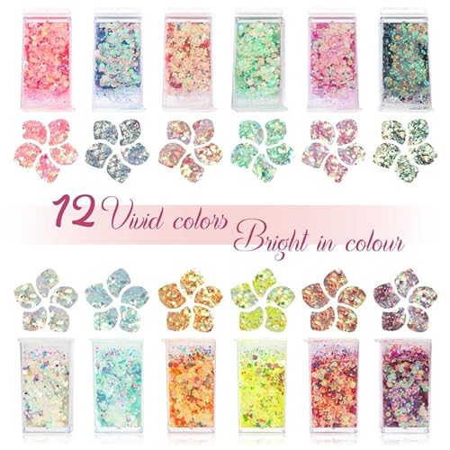 Fluorescente Paillettes per Corpo, Makeup Glitter Eleanore's Diary Set Glitter Iridescent 12 Colori, Luminosa Chunky Glitter per Unghie Glitter Viso DIY Resina, Glitter per Festival Party