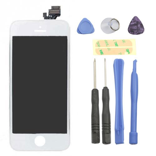 FLY-SHOP-LCD Completo Touchscreen Digitizer e Vetro Frontale per Apple iPhone 5 + Strumenti, colore: Bianco