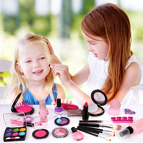 Flybay Set di trucchi per bambini, 25 pezzi, lavabile, con valigetta per il trucco, per bambini, ragazze, set di trucco, gioco di ruolo, regalo per ragazze 4, 5, 6, 7, 8, 9 anni