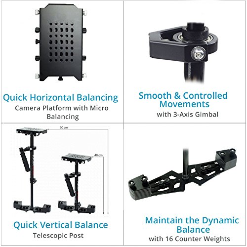 Stabilizzatore compatto e portatile, con micro-bilanciamento, per le più recenti telecamere DV/HDV/DSLR/fino a 3,5 kg