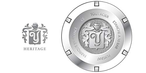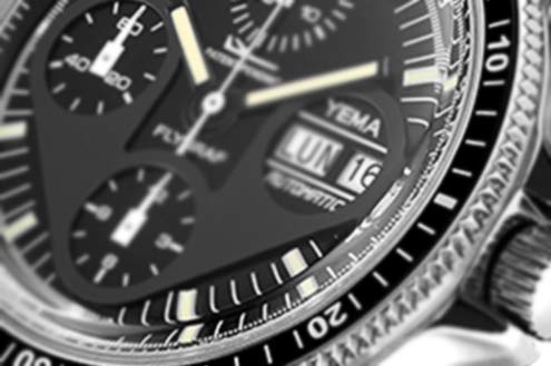 Yema Flygraf Heritage YFLYGRAF - Orologio da uomo, movimento cronografo svizzero ETA VALJOUX 7750, vetro zaffiro, 39 mm, giorno/data, inserto in alluminio spazzolato, cinturino in pelle vegetale