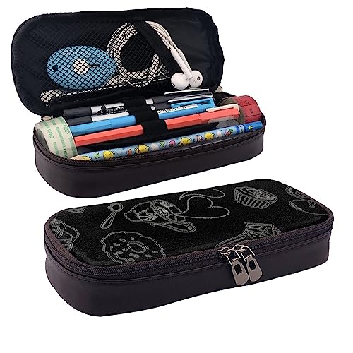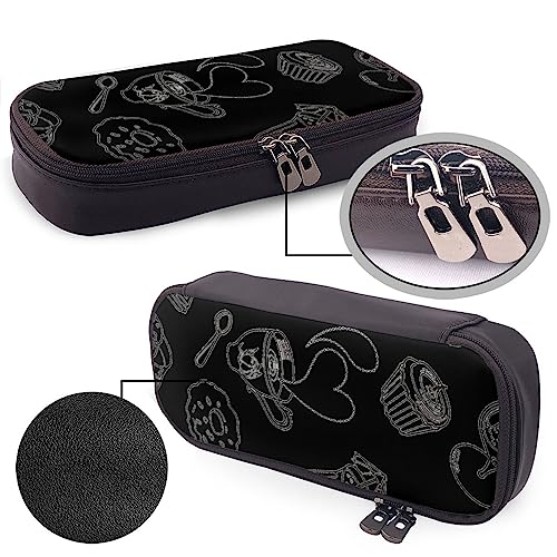 L'astuccio per matite di cancelleria è realizzato in resistente pelle sintetica in microfibra PU, stampa con motivo tè pomeridiano nero, astuccio per il trucco di grande capacità, multifunzione, resistente ai graffi e all'usura, molto adatto per un uso a lungo termine