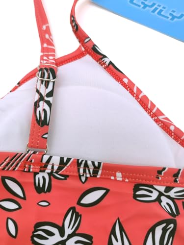 FLYILY Costume da Bagno a Due Pezzi da Donna Costume da Bagno Taglie Forti Tankini Sets(FloralRed,2XL)