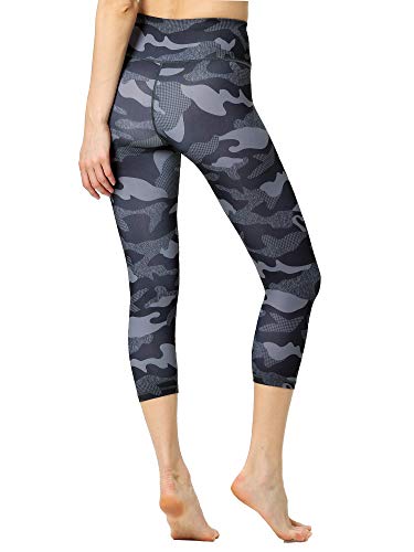 FLYILY Leggings da Donna per Yoga Corsa Allenamento Controllo Pancia Pantaloni 3/4(BlackCamouflage,S)