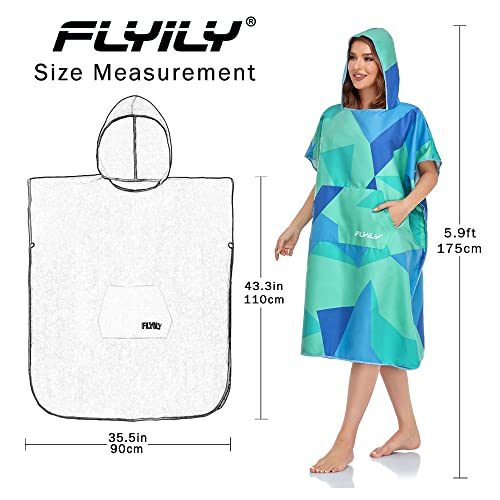 FLYILY Poncho spogliatoio Accappatoio per cambiarsi Poncho ad Asciugamano da Surf con Cappuccio Ideale per Il Surf (Green)