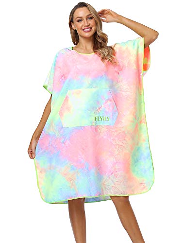 FLYILY Poncho spogliatoio Accappatoio per cambiarsi Poncho ad Asciugamano da Surf con Cappuccio Ideale per Il Surf(TieDye01,L)